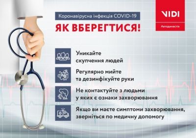 Ми розуміємо вашу стурбованість щодо поширення коронавірусу COVID-19 в Україні. Саме тому VIDI наголошує, що турбота про вашу безпеку та здоров'я є головним пріоритетом VIDI.